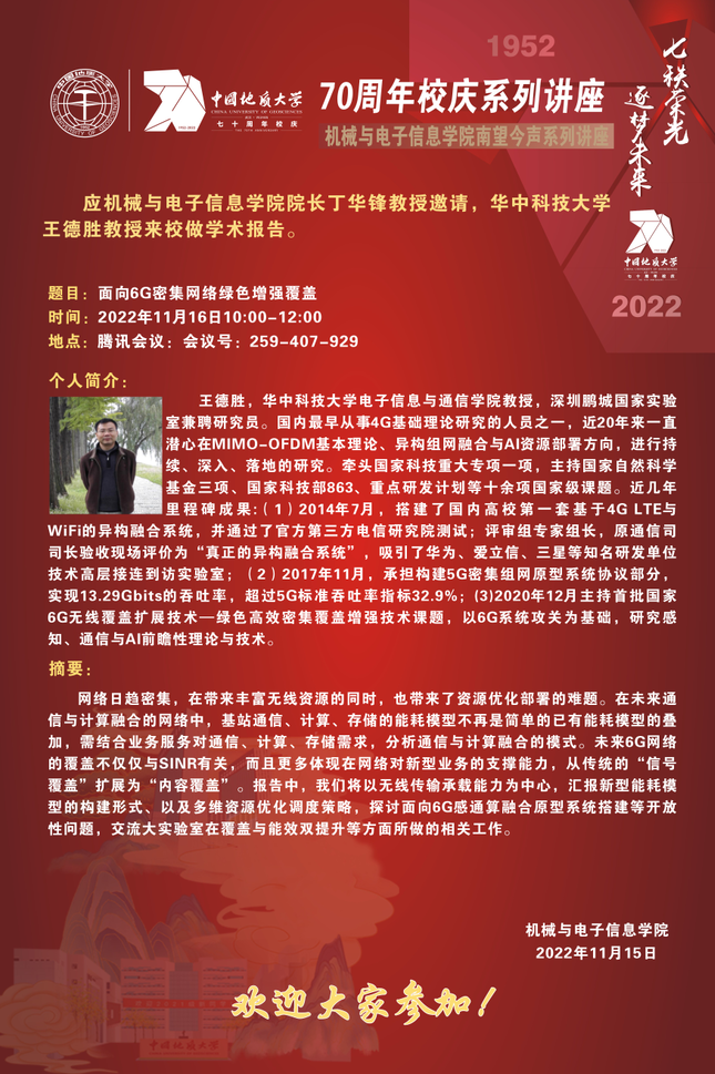 【11月16日】校庆系列学术活动---机电讲坛(2022-28):华中科技大学王德胜教授