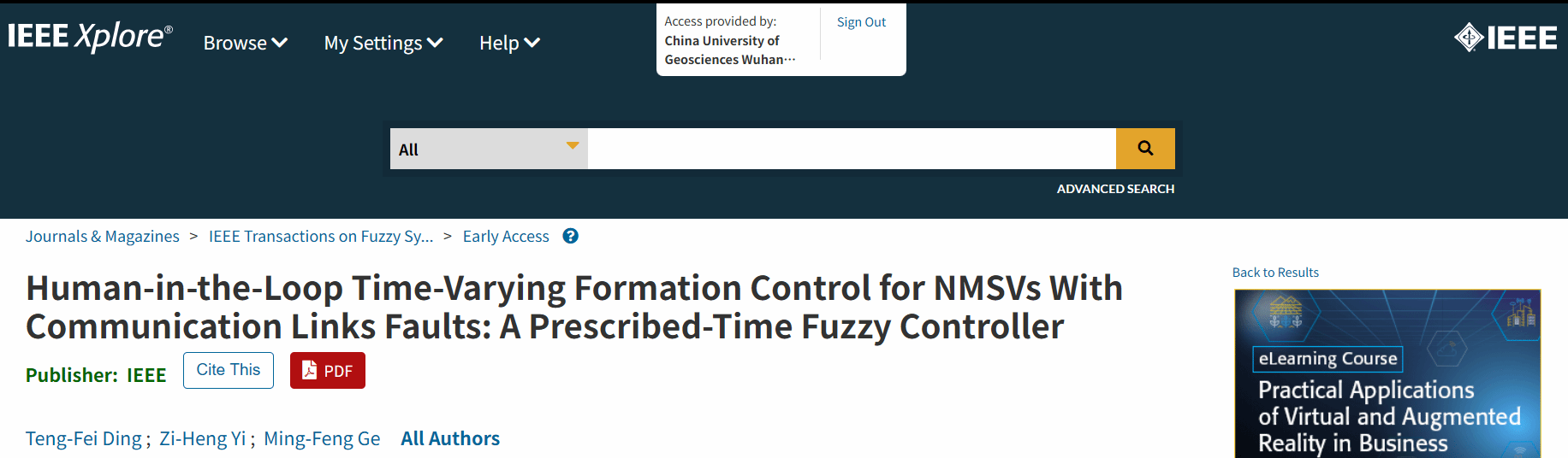近日,艾弗森贝博ballbet官网葛明峰教授团队(丁腾飞、易子恒、葛明峰)在模糊系统领域权威期刊《IEEE Transactions on Fuzzy System》(IF=11.9)发表研究成果。该文提出了一种新型的基于分层控制框架的预定时间模糊控制算法,解决了具有通信链路故障和模型不确定性的多无人船系统的时变编队控制问题。